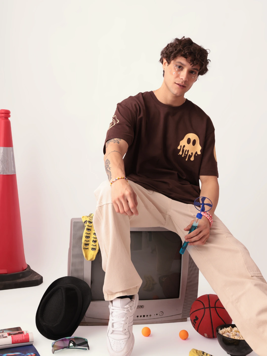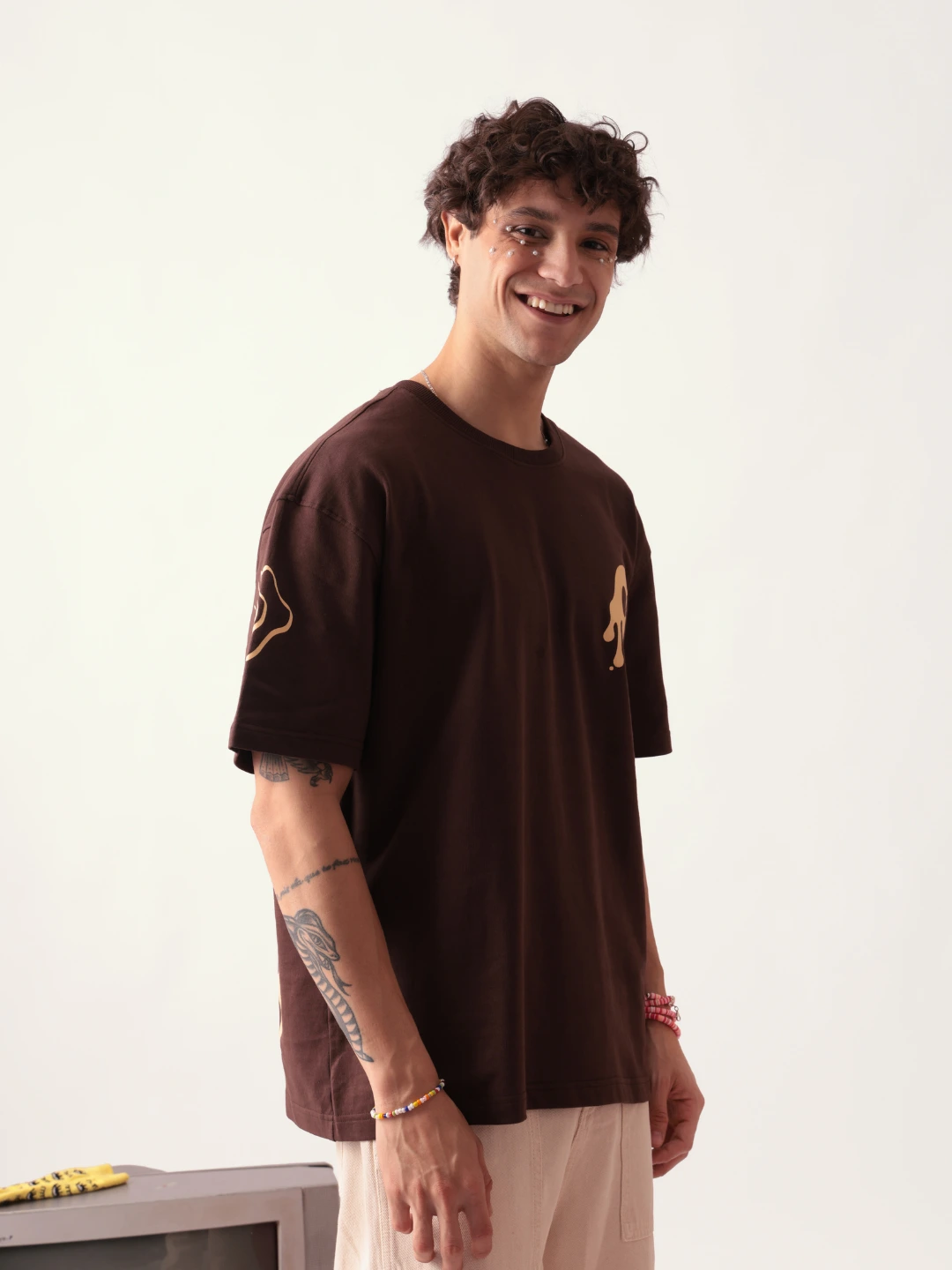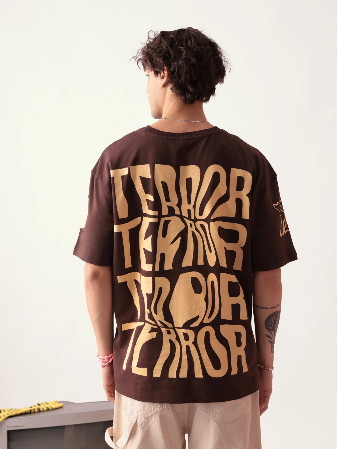 MEN BROWN TEROR OVERSIZED TSHIRT (m-brn-trr-ov-sz-tshirt-23):